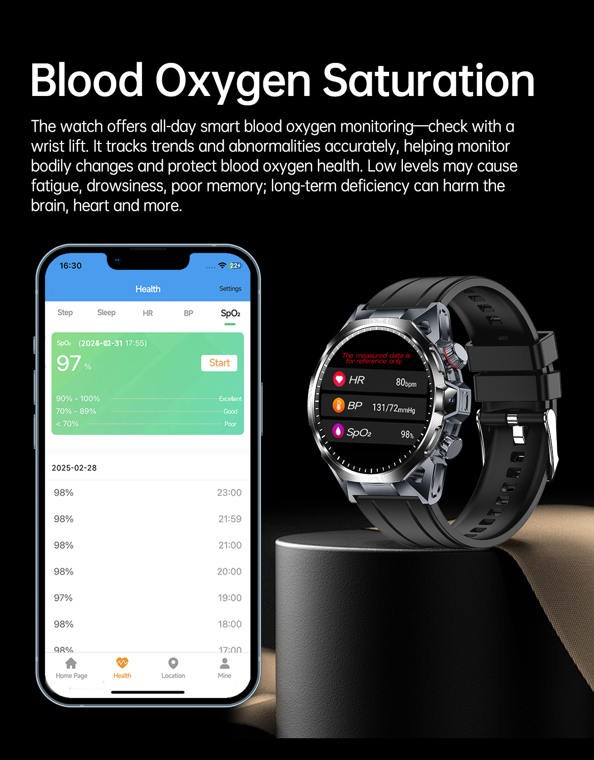 - Proactive Health Alerts: Real-time SpO2 monitoring prevents fatigue and long-term organ strain.